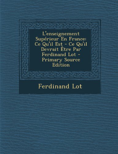 L'Enseignement Superieur En France: Ce Qu'il Est - Ce Qu'il Devrait Etre Par Ferdinand Lot Download or read online books in PDF, EPUB, Tuebl, and Mobi Format. Click Download or Read Online button to get L'Enseignement Superieur En France: Ce Qu'il Est - Ce Qu'il Devrait Etre Par Ferdinand Lot book now.